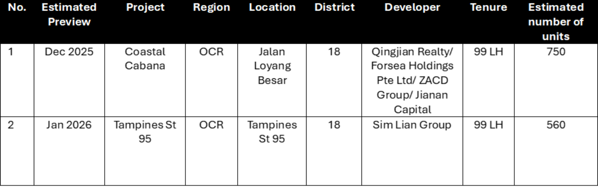 Following this, buyers can look toward to the launch of the 748-unit Coastal Cabana at Jalan Loyang Besar in January 2026. The site was awarded to Qingjian Realty in August 2024 at $729 psf ppr.