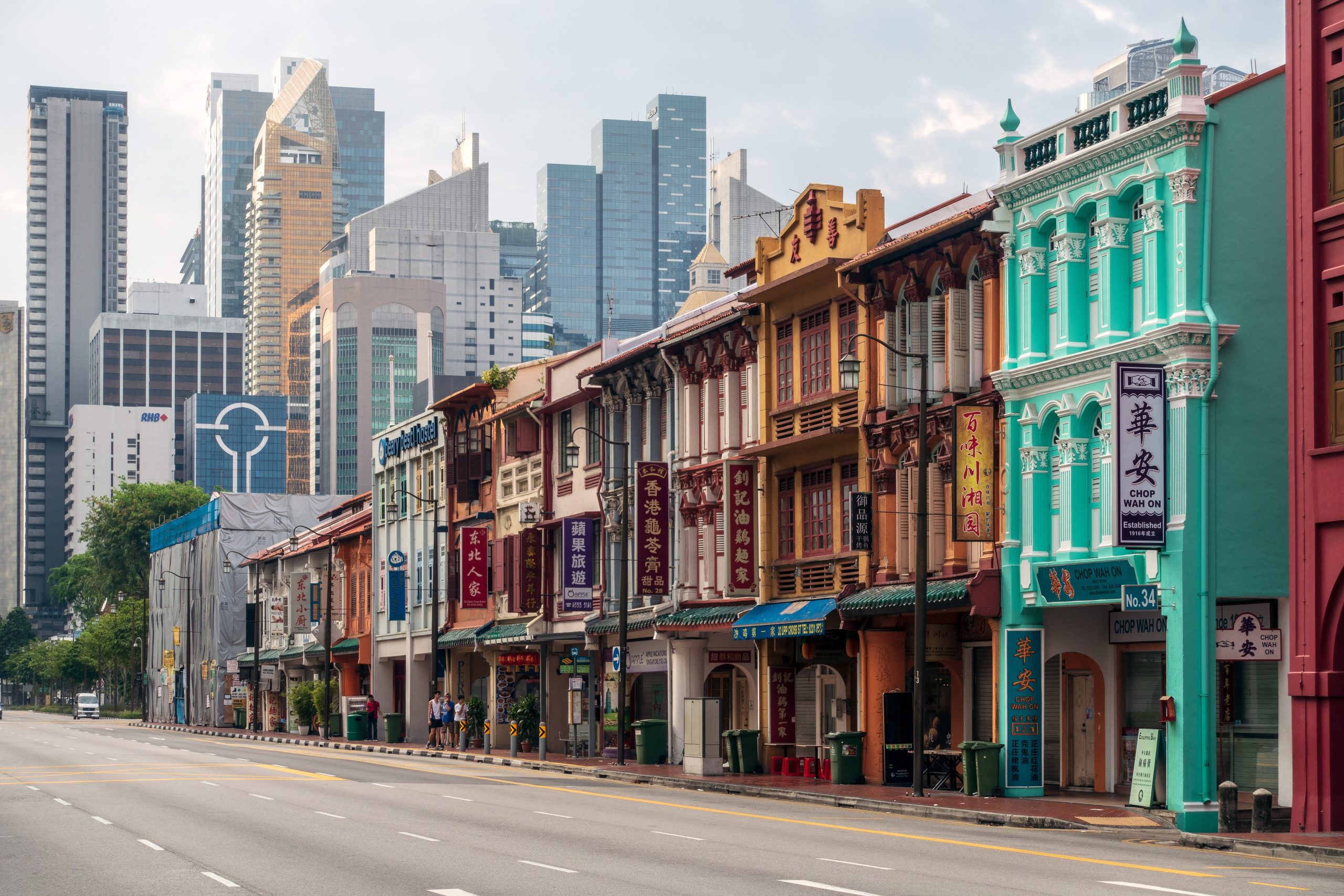 Shophouses against Singapore’s CBD backdrop